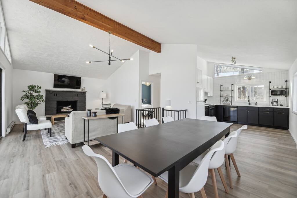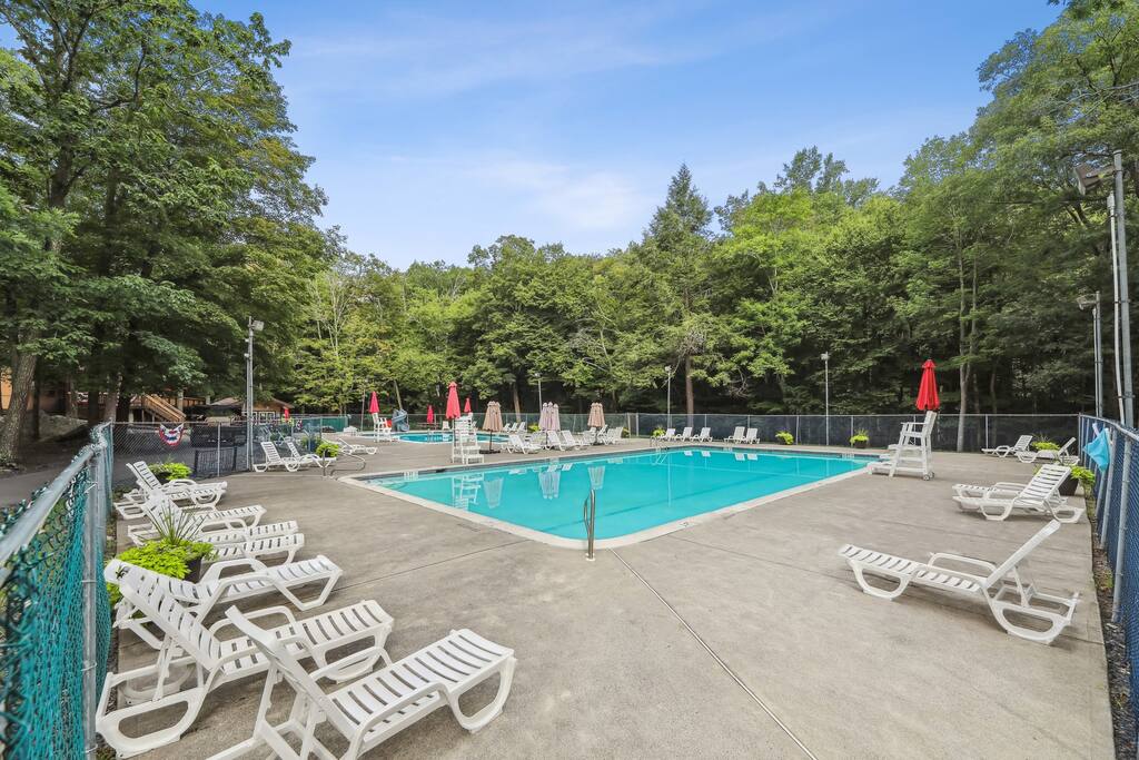 This fall, Hopskip Home to your renovated luxury chalet nestled in the heart of the Poconos near Camelbeach 9mi, Kalahari 12mi, Aquatopia 9mi, Mt Airy 10mi, Shawnee 11mi, Del Water Gap 10mi, Outlets 7mi, Stroudsburg 6mi and more. Located in the amenity-filled gated lake community of Penn Estates, this home offers the perfect mix of relaxation and recreation. Autumn in the Poconos is calling – BBQs, firepits, hot tub, leaf peeping, pumpkin farms and more fun await!