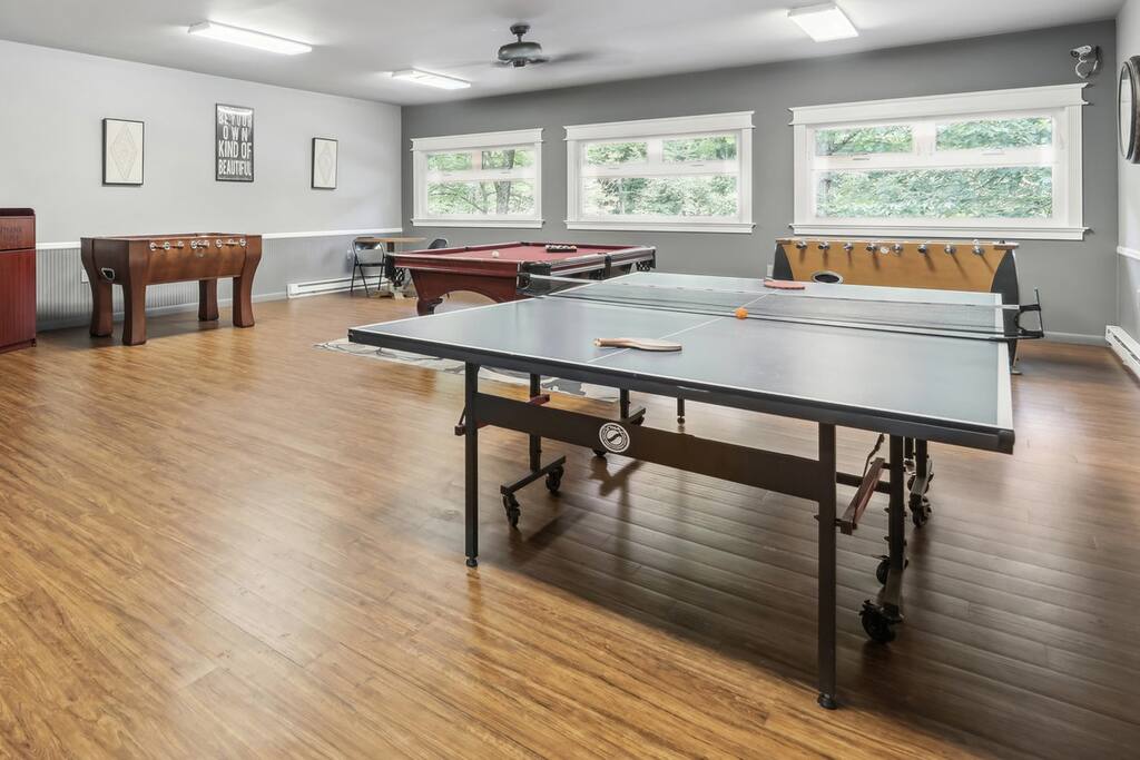 • REMEMBER TO BRING • coffee, milk, sugar, s’mores supplies, bathing suits, beach towels, beach chairs, cooler, sunblock, bug spray, sports equipment to play tennis, volleyball or basketball (we provide 4 pickle rackets to use), fishing rods (PA fishing license needed—fill out online), kayak or canoe • NATURE-Y THINGS • The chalet is located in a very wooded setting. You may encounter wild animals (mostly deer), spiders, flying insects and more critters. • BURN BANS • From time to time, the community may issue burn bans where firepits cannot be lit due to increased risk of wildfires (but you can use the BBQ gas grill). There is a $500 fine if you light a firepit during a burn ban. • POOL & OTHER AMENITY CLOSURES • The community may close pools, lakes and other amenities due to weather, power outages or other circumstances. We have no control over this and cannot issue a refund if they are not available for use. • HOUSE RULES • Please read the "House Rules" section for more info on booking, checking in/out, restrictions, managing the house during your stay and more. Thank you. We look forward to hosting your stay at the chalet!