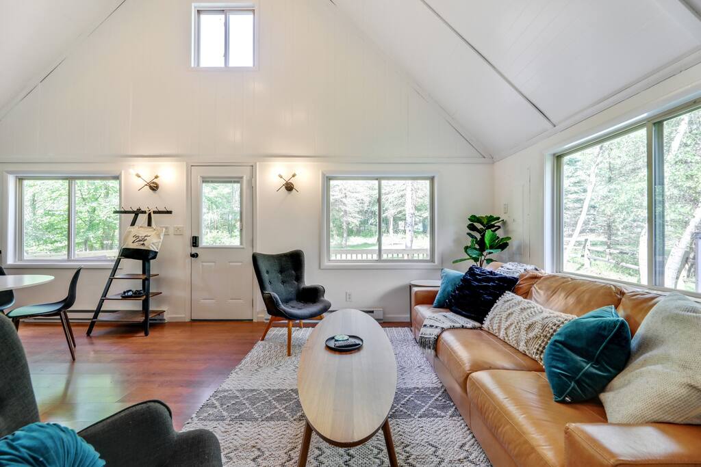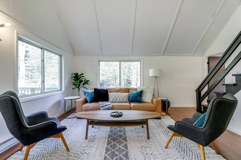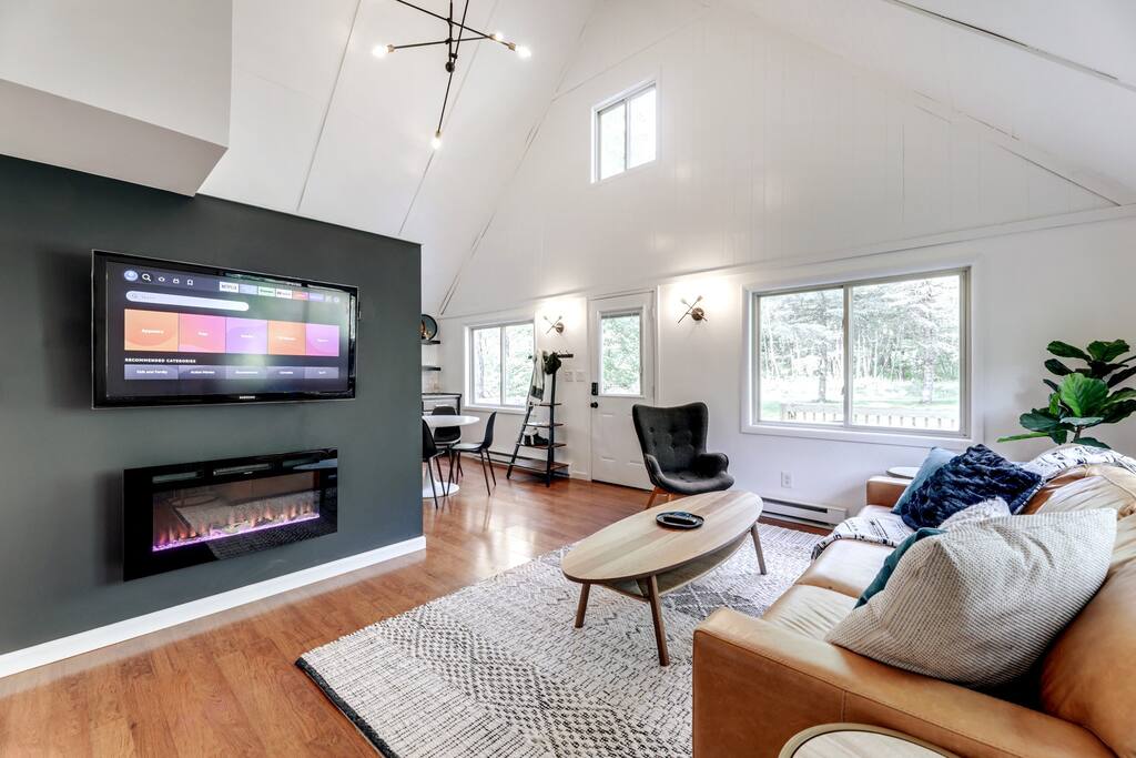 This fall, Hopskip Home to your modern chalet nestled in the woods of amenity-filled Arrowhead Lake community and close to the top Pocono attractions like Kalahari 14mi, Aquatopia 17mi, Camelback 17mi, Mt Airy 18mi, Pocono Raceway 11mi and more. This home offers the perfect mix of relaxation and recreation. Autumn in the Poconos is calling – BBQ, firepit, lake (only a 0.3mi walk), leaf peeping, pumpkin farms and more fall fun awaits!