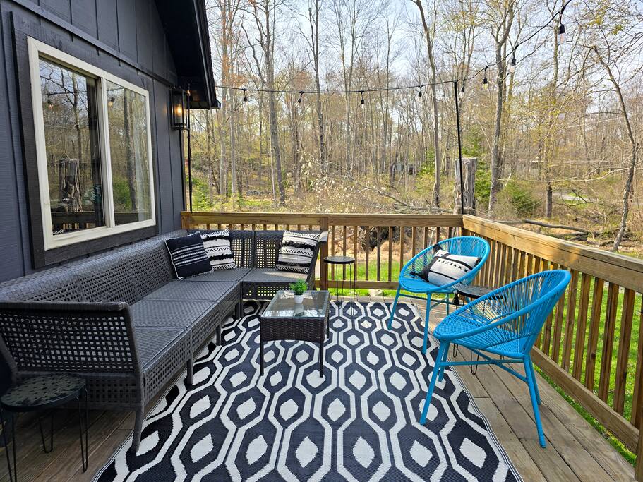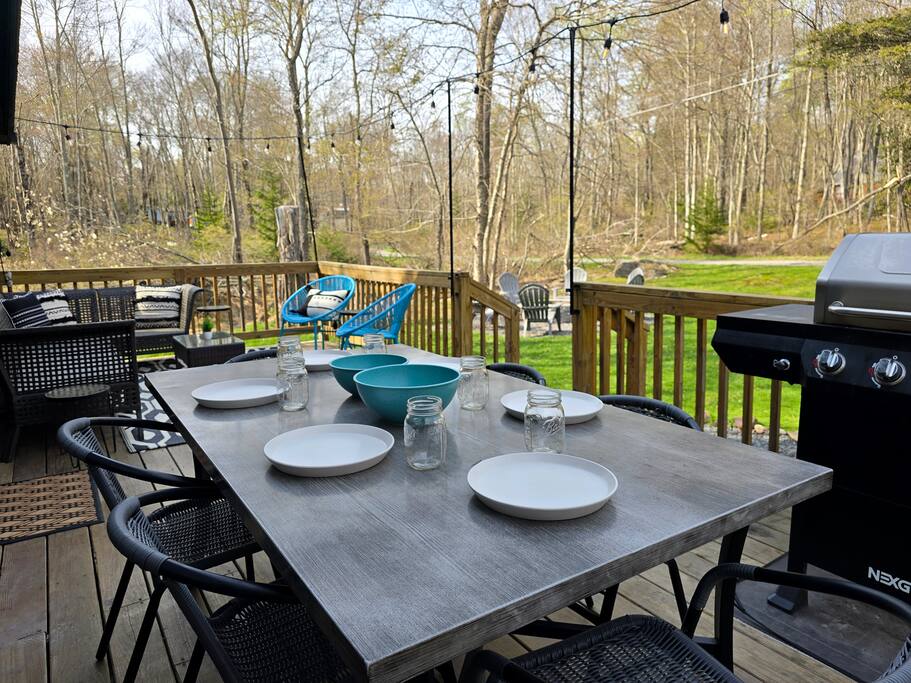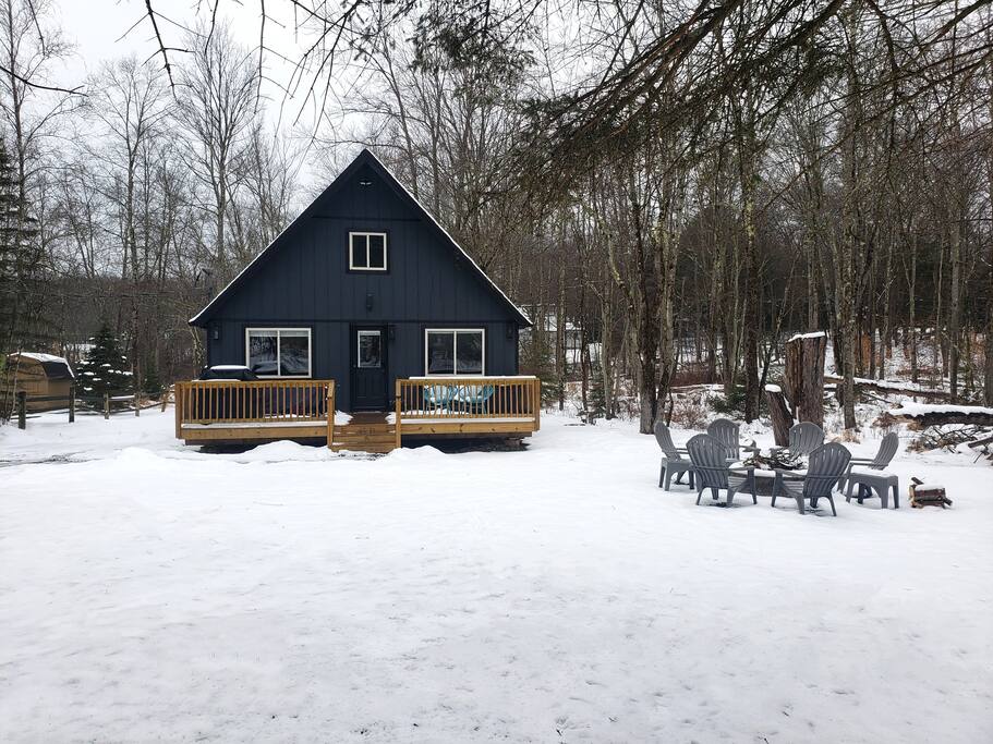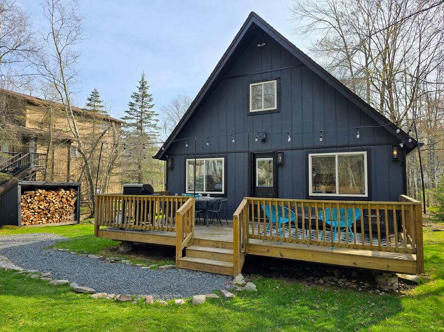 We invite you to experience a stay at the Hopskip Home MODERN CHALET! -----🏠 KEY PROPERTY FEATURES----- • 3 BEDROOMS (1 queen, 3 fulls) • 1 FULL BATHROOM (renovated Jan 2025) • Fully equipped eat-in kitchen • Bright open concept living and dining area with high ceilings • Expansive deck with dining area, gas grill, café lights, lounge seating and forest views • Wood-burning firepit with Adirondack chairs • Stereo, record player, karaoke, disco lights and board games • Located in amenity-filled lake community -----📍 LOCATION HIGHLIGHTS----- GOLD-STAR ARROWHEAD LAKE COMMUNITY • Private, safe, gated community (community registration and MANDATORY FEES required - see "Guest Access" for more details) • Two lakes with four lake “beaches” for swimming, kayaking, fishing and picnicking • Just a 0.3mi walk to Beach 2 from the house • Tennis, basketball and volleyball courts • Children’s playgrounds • Game Room with ping pong, pool tables, air hockey and arcade games • Main Lodge, Fitness Center, Billiards Room (age 18+) and more • Seasonal rentals: kayaks, canoes, paddleboards, bikes, bocce, fishing and sports equipment (weekends only through mid-Oct) • 3 heated outdoor pools (summer season only, refer to POOL HOURS under "Guest Access" for more details) NEARBY ATTRACTIONS (15–35 MIN RADIUS) • Camelback, Aquatopia (indoor water park) & Camelbeach (outdoor water park) • Jack Frost, Big Boulder • Kalahari Resort (indoor waterpark) • Mt. Airy Casino • Pocono Raceway • Pocono Premium Outlets • Gouldsboro, Big Pocono & Tobyhanna State Parks • 940 Golf N Fun, ice cream shops and so much more! -----👋 YOUR SUPERHOSTS----- Hi, we’re your Superhosts, Graham & Krista, a husband and wife team and owners of Hopskip Home, a collection of three vacation rental houses across the Poconos. We renovated and designed everything in the home for you to have a wonderful and thoughtful 5-STAR stay. (Psst, if this listing is booked for your preferred dates, check out our other AirBNB listings: the Hopskip Home Luxury Chalet in East Stroudsburg or the Retro Chalet in Bushkill) -----🌟 WHAT OUR GUESTS ARE SAYING----- "This stay was exactly what I needed. Between the fire pit, the cozy TV area to watch movies, and the beautiful fall colors surrounding the home, what more could you ask for? It was the perfect cozy weekend!" -Sarah “We loved staying at Hopskip Home! It was perfect for our family of four and really loved the layout. The kids enjoyed the loft as their bedroom and the kitchen/open concept was warm and inviting. Graham & Krista were easy to communicate with and accommodated our requests and questions. The community is quiet and all of the amenities are easy to get it to. I loved checking out Hopskip Home’s IG page for extra pictures, videos, and tips! We loved the Poconos and will be back again!” -Angela -----OUR TOP RECOMMENDATIONS----- • We have curated our top recommendations for you to have the best Pocono stay ever! • We can recommend our favorite nearby local and state parks, hiking trails, biking trails, fishing, river rafting, kayaking, skiing, golfing, horseback riding, wine tasting, ATVing, paintballing, rollerskating, bowling, zip lining and more! • We can also recommend fabulous restaurants, unique local shops, top attractions, happening nightlife spots, popular tours, fun festivals and more gems! -----🛶 MORE ABOUT YOUR VACATION CHALET----- EXTERIOR • Large front deck with lounging and dining areas • Gas grill and café lights • Wood burning firepit with Adirondacks • Stunning star-filled night skies LIVING ROOMS • Main Living Room and Loft Lounge • Smart HDTVs with Netflix, Disney+, Hulu and sound system • Entertainment: record player with vintage vinyls, karaoke machine, disco party lights • Board games: Clue, Connect 4, bingo, cards, poker chips and more! • Electric fireplace KITCHEN • Refrigerator, electric range/oven, dishwasher, microwave • Coffee maker, toaster, blender • Pots, pans, plates, bowls, utensils, cups, mugs, wine glasses, serveware, cookbooks and more • Essentials provided: 1 roll paper towel, garbage bags, dish soap, dish tabs, sponge BEDROOMS • Bedroom 1: queen bed • Bedroom 2: full bed • Bedroom 3 (upstairs loft): 2 full beds with TV lounge area • New memory foam mattresses and fresh linens • Closets, hangers and drawers to unpack BATHROOM • Full bath with tub/shower (renovated Jan 2025) • Essentials provided: 1 bath towel per guest, hand soap, shampoo, conditioner, body wash, hair dryer MORE FEATURES • Hopskip Home online Welcome Book with our top curated recommendations (we've almost tried it all for you!) • Pocono guidebooks • On-site parking for up to 3 cars • Air conditioning (mini split, ceiling fan and portable fans) • Heating (mini split and electric baseboards) • Euro-style washer/dryer combo for light loads • Free Wi-Fi, dedicated work desks in Bedrooms 1 & 2 • Mudroom rack
