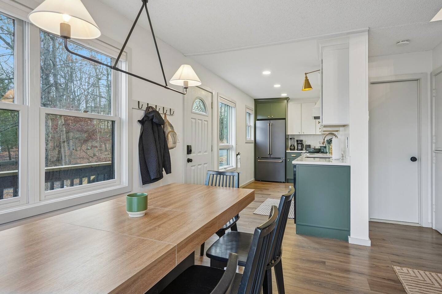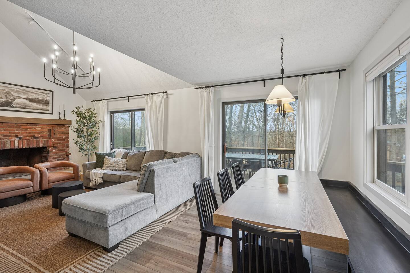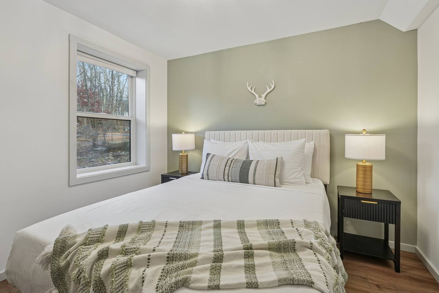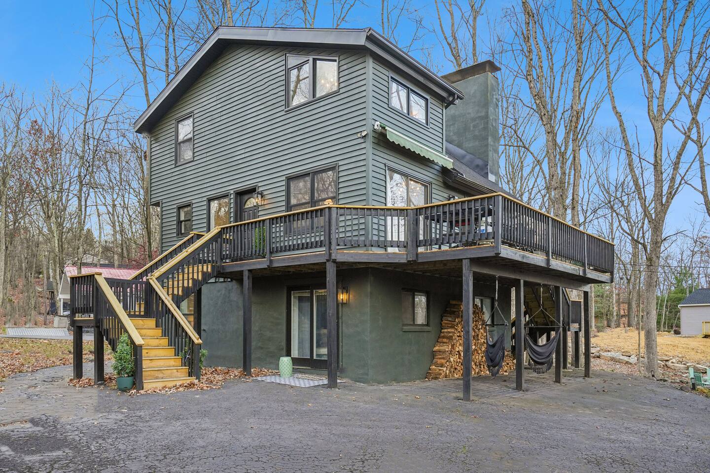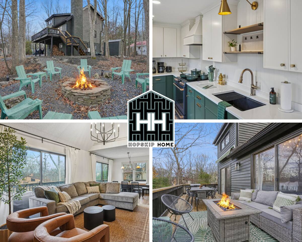 This winter, Hopskip Home to your renovated Designer Chalet nestled in the heart of the Poconos near Camelback 9mi, Shawnee 11mi, Kalahari 12mi, Aquatopia 9mi, Mt Airy 10mi, Del Water Gap 10mi, Outlets 7mi, Stroudsburg 6mi and more. Located in the amenity-filled gated lake community of Penn Estates, this home offers the perfect mix of relaxation and recreation. Winter in the Poconos is calling –skiing, tubing, and more fun await!