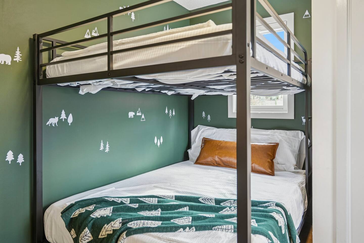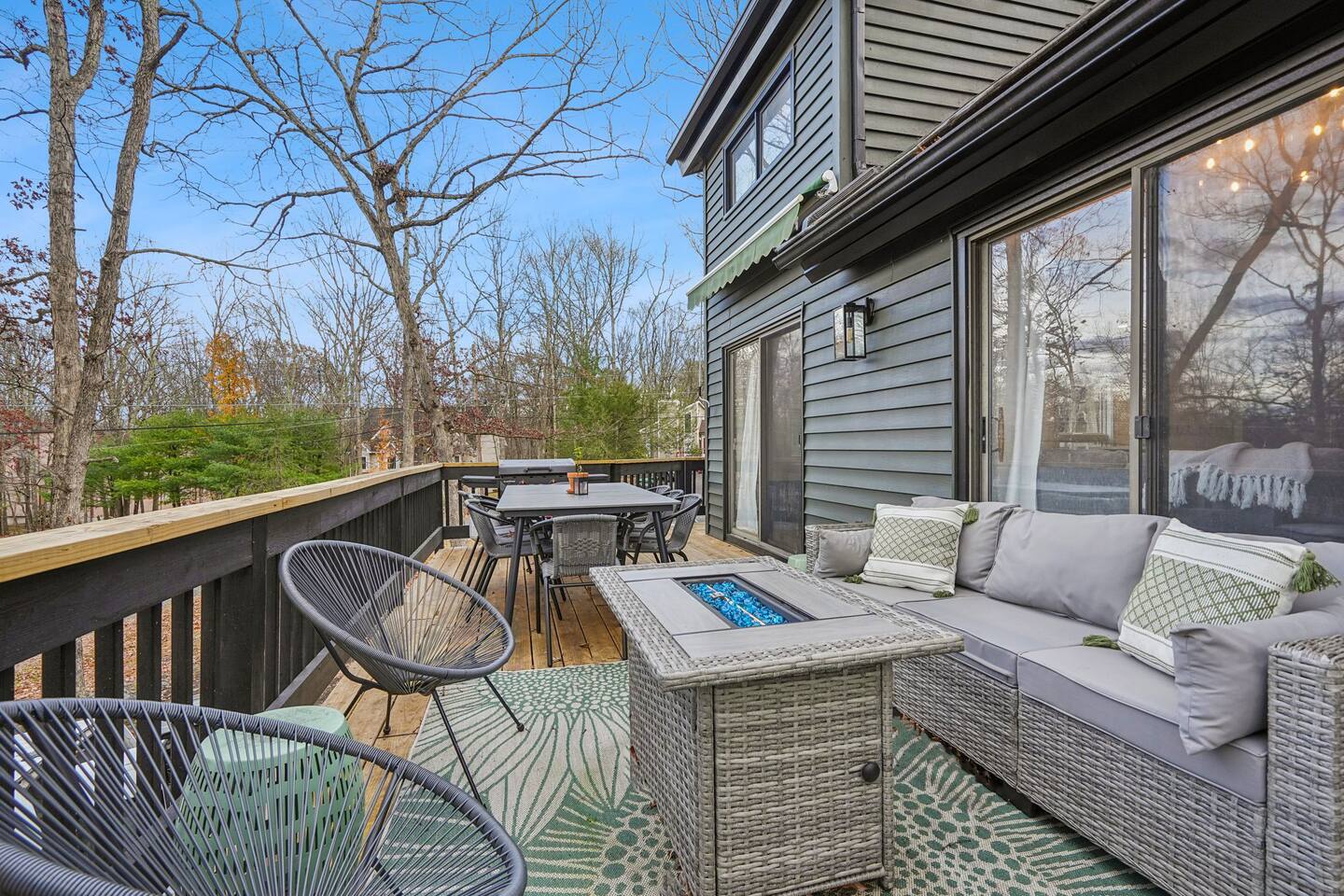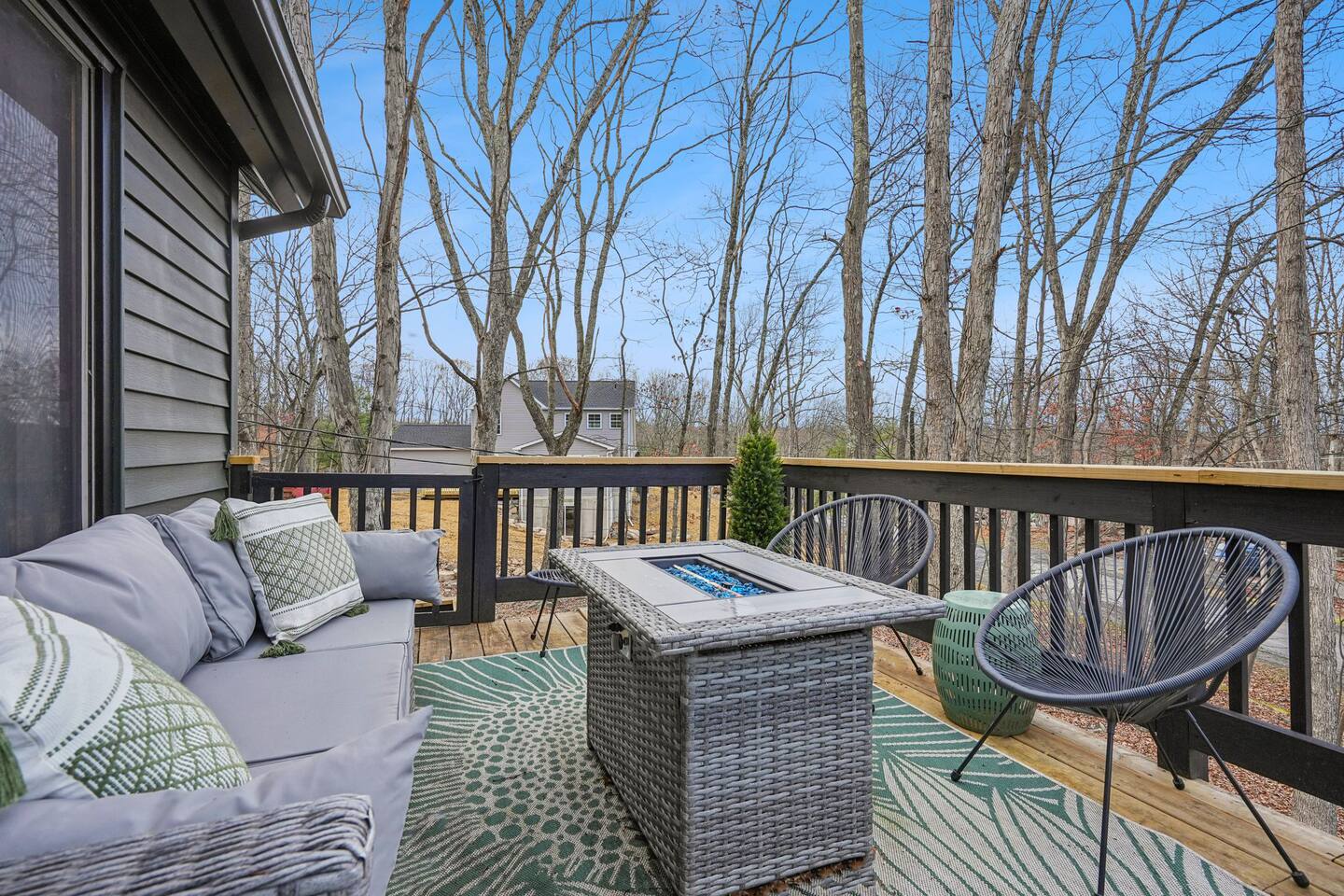 We invite you to experience a stay at the Hopskip Home DESIGNER CHALET! -----KEY PROPERTY FEATURES----- • 5 BEDROOMS, sleeps 10 • 3 FULL BATHROOMS with toiletries • New modern kitchen with quartz countertops and new appliances, fully equipped • Open concept living and dining area with high ceilings • Karaoke Lounge with stage, lights, microphones and TV for music videos with lyrics • Movie Lounge with 85” HDTV • Smart TVs, sound system, board games, toys • Expansive deck with dining area, gas grill, lounge area with propane firepit • Yard with built-in wood firepit, Adirondacks and swing chairs • Located in amenity filled lake community • Centrally located to many top attractions -----LOCATION, LOCATION, LOCATION! ----- AMENITY-FILLED PENN ESTATES COMMUNITY • Private, safe, gated community (community registration required - see "Guest Access" for more details) • Highland Lake with lake “beach” for swimming, kayaking and fishing (3 min drive to lake), scenic picnic pavillion • Tennis, pickle, basketball and volleyball courts • Children's playgrounds • Game Room with ping pong, pool and foosball tables • Archie's Corner, a convenience store/deli • Outdoor pools (summer season only, refer to POOL HOURS under "Guest Access" for more details) 10 TO 20 MINUTE RADIUS • Downtown Stroudsburg & East Stroudsburg • Camelback, Aquatopia & Camelbeach • Delaware Water Gap • Pocono Premium Outlets • Mt. Airy Casino • Pocono Beverage Trail faves like Mountainview, Silverback, Shawnee Craft, Barley Creek and more! 25 TO 35 MINUTE RADIUS • Kalahari Resort • Shawnee, Jack Frost & Big Boulder • Bushkill Falls • TreeVentures • Pocono Raceway and more! -----YOUR SUPERHOSTS----- Hi, we’re your Superhosts, Graham & Krista, a husband and wife team and owners of Hopskip Home, a collection of four vacation rental houses across the Poconos. We renovated and designed everything in the home for you to have a wonderful and thoughtful 5-STAR stay. Psst, if this listing is booked for your preferred dates, check out our other Hopskip Home AirBNB listings: (1) Hopskip Luxury Chalet in East Stroudsburg (located 1 house away) (2) Hopskip Retro Chalet in Bushkill or (3) Hopskip Modern Chalet in Pocono Lake -----OUR TOP RECOMMENDATIONS----- • We have curated our top recommendations for you to have the best Pocono stay ever! • We can recommend our favorite nearby local and state parks, hiking trails, biking trails, fishing, river rafting, kayaking, skiing, golfing, horseback riding, wine tasting, ATVing, paintballing, rollerskating, bowling, zip lining and more! • We can also recommend fabulous restaurants, unique local shops, top attractions, happening nightlife spots, popular tours, fun festivals and more gems! -----MORE ABOUT YOUR VACATION CHALET----- EXTERIOR • Expansive deck with treetop views • Dining area with gas grill • Lounge area with propane firepit • Built-in wood burning firepit with Adirondacks LIVING ROOMS • Main Living Room (middle level) and Lounge (lower level) • Smart HDTVs with Netflix, Disney+, Hulu • Board games and card games • Note: indoor fireplace is for decoration only KITCHEN & DINING • Renovated kitchen with new cabinets, quartz countertops and appliances • GE Café refrigerator, electric range/oven, dishwasher, microwave • Coffee maker, toaster, blender • Pots, pans, plates, bowls, utensils, cups, mugs, wine glasses, serveware and more • Children's dishware, utensils and high chair • Essentials provided: 1 roll paper towel, garbage bags, dish soap, dish tabs, sponge • Large indoor dining table seats 10 SLEEPING ACCOMMODATIONS • Primary Bedroom: queen bed, high ceilings (upper level) • Bedroom 2: full bed (upper level) • Bedroom 3: full bed (upper level) • Bedroom 4: full-over-full bunk bed (middle level) • Bedroom 5: queen bed (lower level) • Pack N Play travel crib (bring sheets) • New memory foam mattresses and hotel-quality linens • Closets, hangers and drawers to unpack BATHROOMS • Three full bathrooms, fully renovated • Essentials provided: 1 bath towel per guest, hand soap, shampoo, conditioner, body wash, hair dryer MORE FEATURES • Hopskip Home online Welcome Book with our top curated recommendations (we've almost tried it all for you!) • Pocono guidebooks • On-site parking for up to 5 cars • Air conditioning (mini splits) & heating (mini splits and electric baseboards) • Full-sized front loader washer and dryer • Free Wi-Fi, dedicated work desk in Bedroom 2 • Mudroom bench, hooks and coat closet Guest access ***MANDATORY COMMUNITY REGISTRATION*** • Guests must e-sign a mandatory Penn Estates Community Short-Term Registration Form prior to arrival to gain access into the community • Form will be sent upon booking. You will need to provide your email, full names of all guests, if under/over age 21 and all cars (max 4 cars). • The HOA registration fee is included in your total price • If you do not complete the registration by 5pm at least 3 days prior to arrival, the HOA charges an extra $25 expedited registration fee which you would be responsible for • If you need to modify your registration form after it has been submitted to the HOA, there is a $25 re-registration fee • No modifications can be made to registered guests and cars within 24hrs prior to arrival • POOL HOURS: please message to confirm outdoor pool hours. Outdoor pools are open daily from 06/21/25 to Labor Day, generally from 11am-8pm. Outdoor pools are open on weekends only from Memorial Day weekend to 06/20/25. ***PROPERTY USE & LIABILITY WAIVER*** Guests will also need to e-sign a property use and liability waiver to use the house amenities including the firepits.